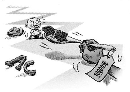 “這樣的收費(fèi)不算貴,我們的老師都有一定的英語(yǔ)專業(yè)水平,可以雙語(yǔ)教學(xué)!边@位工作人員說(shuō),娛樂(lè)教室里的兒童玩具設(shè)施大多是國(guó)外進(jìn)口的,每天都進(jìn)行消毒,收費(fèi)標(biāo)準(zhǔn)自然比其它地方高一些。記者隨后走訪了省城其它幾家早教機(jī)構(gòu),發(fā)現(xiàn)每節(jié)課最低收費(fèi)也要100元,這還不包括資料費(fèi),如果家長(zhǎng)想要得到課堂用的光盤(pán)得教學(xué)資料,還要另外花錢(qián)購(gòu)買(mǎi)。