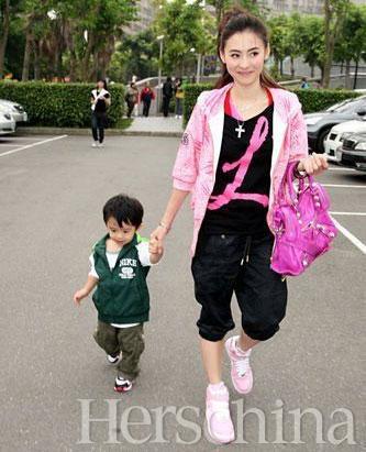 點評:很多人都會問里面那件T恤是什么品牌,實際上就是LOVELIFE 慈善活動的宣傳衫。不過柏芝搭搭配得很好,發(fā)型帶一點街頭風(fēng)格,鞋子是經(jīng)典板鞋款。不過最主要的是一身的顏色搭搭配得非常和諧,為她的青春感加了不少分。相反Lucas的顏色就不是那么跳躍,反而有些沉悶,再次陪襯了一下媽媽的青春甜美。