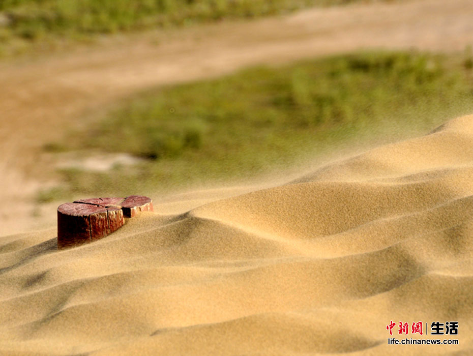 風吹過位于庫布其沙漠邊緣的響沙灣旅游區,掀起部分揚塵天氣。