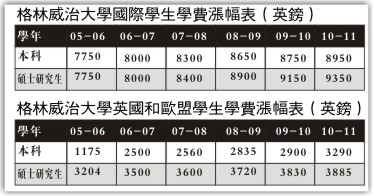 位于倫敦東南的格林威治大學(xué)是一所擁有較多中國(guó)留學(xué)生的學(xué)校,過去8年每年大陸留學(xué)生都在千人以上。該校收費(fèi)歷來屬于中等偏下,2009年國(guó)際學(xué)生的學(xué)費(fèi)是本科每年8750鎊,而研究生則是9150鎊。今年9月起新學(xué)年的費(fèi)用略有調(diào)整,本科要8950鎊,碩士研究生需要9350鎊,只比前一年增加200鎊。
