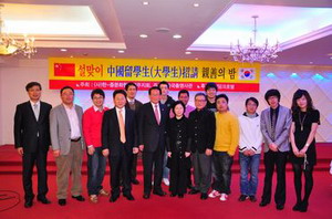 中新網3月10日電 據外交部網站消息,2010年3月5日晚,雖然外面細雨綿綿,但韓國光州市希丁克酒店大宴會廳內卻是一片歡歌笑語、喜氣盈門。由韓中文化協會和駐光州總領館共同舉辦的“迎新春——中國留學生之夜”招待會在這里舉行。韓中文化協會總裁李榮一、光州支會會長宋東石及協會多位顧問和理事、駐光州總領事閻鳳蘭和來自全南大學、朝鮮大學、湖南大學、光州大學和木浦大學的中國留學生代表等100余人出席。