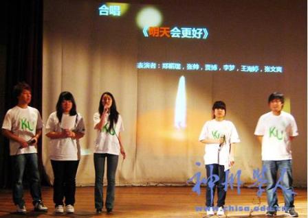 在中國駐韓大使館教育處的領導和在韓中國留學生聯合會的號召下,由建國大學學生會籌劃舉辦的“情系玉樹”,即建國大學留學生為玉樹災區人民祈福募捐晚會,于4月28號在建國大學學生會館小禮堂莊嚴舉行。