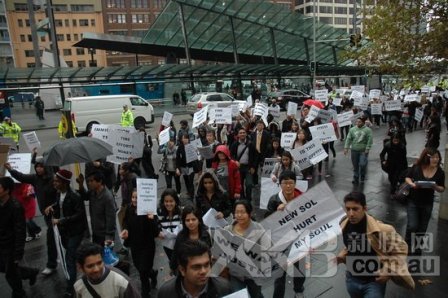 中新網6月7日電 據澳大利亞新快網報道,為抵制聯邦移民部推出的新的職業技術清單(SOL),以及抗議所受的不公平對待,近200名國際學生3日冒雨走上悉尼街頭,高舉標語振臂疾呼。不過,一名來自私立學校的中國女生Annie表示,“我原以為人會更多的”,可謂一針見血。