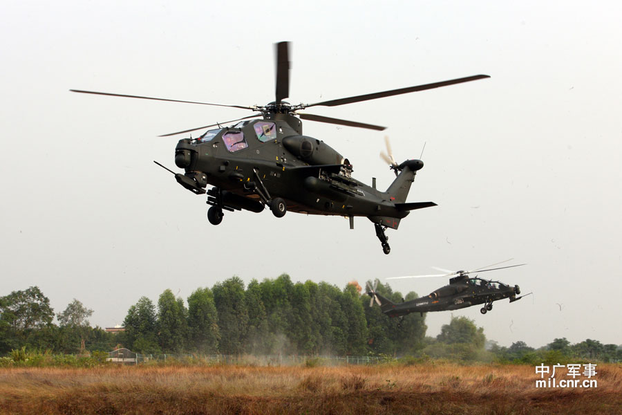 11月7日,廣州軍區某陸航旅飛行員駕駛我國產某新型武裝直升機進行訓練。特約記者李三紅攝影報道(來源:中國廣播網)