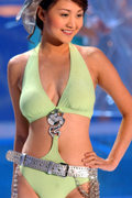2003年度香港小姐競選決賽,二十三日晚假紅磡香港體育館舉行,十二位競選佳麗穿著不同服飾出場,其中包括虛擬夢幻裝、自選泳裝、突顯性格晚裝、大會泳裝及旗袍,展示佳麗不同美態(tài)。為營造競選現(xiàn)場氣氛,主辦方投巨資搭建起大型水池,十二位競選佳麗穿著多款泳裝一展風(fēng)采。經(jīng)競逐,曹敏莉獲冠軍并同時(shí)獲得大賽“芙蓉美態(tài)小姐”和“國際親善小姐”榮銜 , 楊洛婷獲亞軍(左)、戚黛黛獲季軍。 參加競選的十二位佳麗為曹敏莉、 王從希、林艾塋、譚靜雯、楊洛婷、吳幸美、詹德貞、陳榕梅、李嘉怡、李詩韻、區(qū)婉澄、戚黛黛。中新社傳真 錢興強(qiáng)