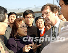 香港立法會交通事務委員會、保安事務委員會等議員和團體代表,一月十日參觀即將實施二十四小時通關的落馬洲管制站。圖為劉健儀等向該管制站工程師了解擴建事宜。潘索菲 攝