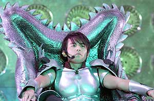演唱會花樣百出,周杰倫穿上銀色盔甲,演唱開場的變奏版《雙截棍》,接著在巨大籠子里唱《半獸人》時,舞者還搭配扮成獸人群魔亂舞;唱完龍騰虎躍現(xiàn)場擊鼓式的《龍拳》,突然從天而降一個籃球架,讓周杰倫大展球藝;接著再演唱具濃厚中國風味的《斗牛》等;不論是服裝造型或是舞臺機關,都叫人眼花繚亂。