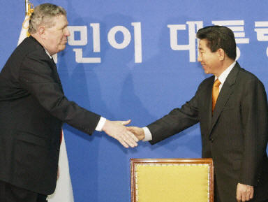 金大中稱朝核危機加深 重申爭取和平解決方針 (2003-01-10 14:35:19)