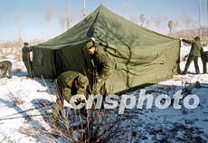 宛如一陣颶風卷過山谷,駕駛員飛快躍上駕駛室,按動車輛低溫啟動裝置,一陣馬達轟鳴,數百臺車輛一次點火啟動成功,車載帳篷從兩側緩緩自動收攏,野戰指揮所、野戰供修所等旋即變成了車載集裝箱。炮兵宿營點上,戰士們裝載輜重,掛鉤牽炮,迅速完成迷彩偽裝……僅30分鐘,全師由宿營轉入了行軍狀態,帳篷村變成了行軍車隊,列陣雪野。