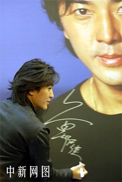 1月18日,瑞士豪雅表(TAG Heuer)2003中國巡回展在北京當代商城揭幕。豪雅表的忠實擁護者,著名影星鄭伊健親臨現場,舉辦簽名活動。
