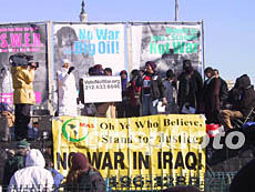 今天活動的組織者是一個名為“現在行動,制止戰爭,結束種族隔離”(ANSWER)的國際組織。他們稱,此次號稱“越戰后最大的反戰活動”是為了紀念即將到來的馬丁·路德·金紀念日。