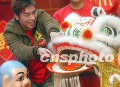 香港歌手許志安一月二十日出席“麥當勞TM新年開心成雙”醒獅點睛儀式。錢興強 攝