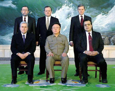 金正日(圖前排中)與俄羅斯特使、副外長洛休科夫(圖前排左1)一行合影留念。