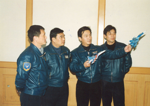 老一代試飛員善于學習和鉆研的光榮傳統,今天在新一代試飛員身上進一步得到了弘揚光大。去年10月,副大隊長畢紅軍到西北大漠進行導彈定型試飛,這是一項高風險試飛課目。稍有不慎,就會機毀人亡。為防止意外,畢紅軍在翻閱大量資料的同時,還與科研人員一道,反復研究打導彈的最佳方案,經過認真準備,他摸索出了打迎頭和尾后發射導彈的規律。正式試飛那天,他沉著地按照飛行指令,準確進入攻擊空域,迅速捕捉目標,輕輕按動發射電鈕———“轟轟!”長空炸響一聲霹靂,導彈直中靶心,靶機凌空爆炸。“首發命中,試驗成功!”之后,他又在不同條件下發射了7枚導彈都準確擊中目標。創新是試飛員前進的動力,也是他們永恒追求的目標。大隊創建50多年來,他們先后推出了國產高性能發動機、打新型導彈等600多項科研成果,其中有400多項填補了我國航空工業的空白,有的成果還處于世界領先地位。