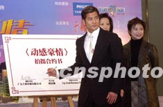 歌星郭富城1月22日在香港出席廣東千秋傳媒有限公司投資的電視劇“動感豪情”簽約儀式,郭富城在該電視劇擔任男主角,亦是他主演的首部國產電視劇,該電視劇全劇以香港作為背景,透過內地87個電視臺播放,讓內地超過數以億計的觀眾收看,這將有助內地觀眾來香港旅游的興趣。中新社傳真 鄧慶樂 攝