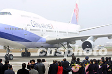 臺灣中華航空公司包機返鄉的客機二十六日清晨飛抵上海浦東機場(2)作者:張宇