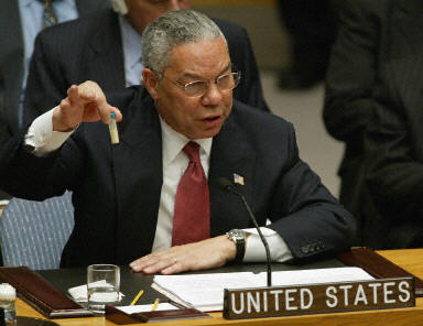 圖:鮑威爾向安理會提交伊擁有非法武器新證據