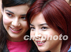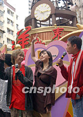 香港歌手李蘢怡、和“明珠大使”保采芬,二月九日出席在銅鑼灣時代廣場舉行的情人節(jié)“戀人短訊”大募集活動。錢興強(qiáng) 攝
