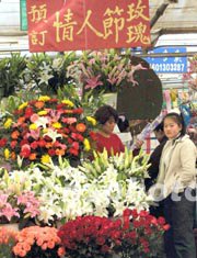 “情人節”即將來臨,北京花卉市場開始為人們預訂玫瑰花,迎接情人節的到來。作者:趙振清
