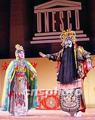 十四日晚,巴黎法華僑團為歡度中國元宵節舉辦中國戲曲音樂晚會,上海文化訪歐團為巴黎一千多華僑華人及法國各界人士獻演中國傳統文藝節目。圖為上海京劇院著名演員尚長榮和夏慧華表演京劇《霸王別姬》。作者:蔚中