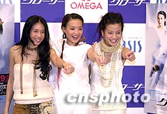 中國大陸及港臺影星趙薇、舒淇、莫文蔚十七日在東京為她們主演的新影片《夕陽天使》作宣傳,該片將于近期在日本公映。作者:陶光雄