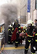 26. 圖:韓國救援人員搶救地鐵縱火案傷員(2月18日 15:54)
