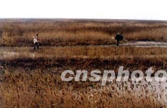 中國第三大島崇明島東灘濕地的“拾灘人”在雨霧中前往濕地深處作業。崇明東灘地面積326平方公里,是國際重要濕地之一,濕地“拾灘人”以拾撿出售泥鰍、螃蟹類水產品為生。作者:劉殊瑾
