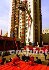 中國“兩會”召開前夕,北京某消防支隊在居民區舉行消防演練,提高應付突發火災能力,增強市民消防意識。作者:宋吉河
