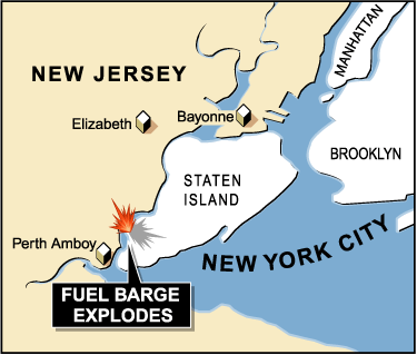 消防官員初步報告稱,當時有油輪在搬運物品時因不明原因起火。目擊者稱,巨大的爆炸聲很遠就能聽到,濃煙在紐約市中心曼哈頓地區都可以看到。