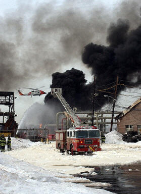 美國埃克森石油公司所屬的這座油庫緊鄰一碼頭。紐約消防部門提供的信息說,一艘裝有丙烷的貨船在油庫附近爆炸起火,火勢迅速波及油庫貯油設施并引發了第二次爆炸。