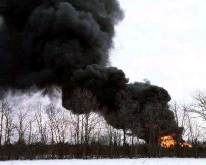 中新網2月22日電 美國當地時間2月21日(北京時間22日)消息,美國安大略湖附近一列裝載有液化石油氣的火車出軌造成液體外漏,引發大火,當地居民已經疏散,但傷亡情況尚不明。(春風)