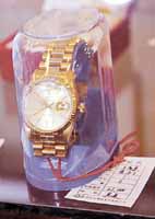 據說慕綏新當時定制這套球桿的價格高達二點五萬美元,而今天這套球桿的起拍價僅為一千零八十元人民幣。這套球桿起拍開始后,隨著競標人一次次加價,其價格就一路狂奔、節節攀升,現場氣氛極其熱烈。當一位大連商人喊出十萬零一千元的高價后,一位董姓商人當即喊出十二萬元的高價。這只十二高爾夫球桿最終以每桿一萬元的高價歸到了這位志在必得的董姓商人名下。據說這位行蹤神秘的董姓商人來自外地,高價買下這十二只球桿是要作為反腐敗教育的永久性紀念,他拍賣成功后便迅速離開現場,不肯接受記者采訪。當劉志堅敲響今天上午最后一聲悅耳有力的拍賣槌時,今天上午的拍賣會以一百九十六點五萬元的最終成交額“一錘定音”。這比拍賣師事先估計的成交額高出六十多萬,包括兩套住宅、一個車庫、兩個“五愛市場”檔口以及高爾夫球桿、進口跑步機等七個運動器械共計十二個標的順利拍賣成功。