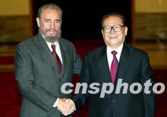 中新社北京二月二十六日電(記者 齊彬)中國(guó)國(guó)家主席江澤民今天在人民大會(huì)堂同來(lái)華進(jìn)行國(guó)事訪問(wèn)的古巴國(guó)務(wù)委員會(huì)主席兼部長(zhǎng)會(huì)議主席卡斯特羅舉行會(huì)談。雙方在親切友好的氣氛中就雙邊關(guān)系和共同關(guān)心的國(guó)際問(wèn)題交換了意見。
