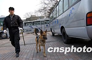 二十八日,警察在全國政協委員駐地北京友誼賓館加強安全保障工作,派出警犬對駐地的停車場、花園等地進行徹底搜查,確保安保工作萬無一失。