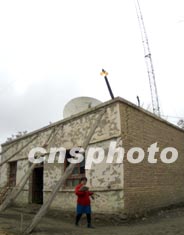 新疆地震災區的瓊庫爾恰克鄉廣播站,大地震后一直堅持在危房中向災民播送政府救災政策,安撫災民情緒。作者:宋吉河