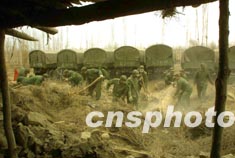 在新疆地震災區救災的解放軍官兵奮不顧身,連日為一萬八千戶災民搶救財產。作者:宋吉河