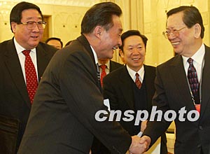 吳邦國在北京人民大會堂與香港人大代表團共同審議政府工作報告。作者:鄭萍萍