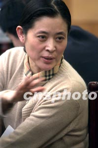 全國政協委員、電視主持人倪萍在七日的分組討論會上呼吁關注農村普教問題,對貧困山區發放“教育券”來保障教育資金的專款專用。作者:廖文靜