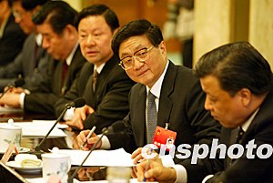 中新社北京三月八日電中共中央總書記胡錦濤和其他幾名中共中央政治局常委曾慶紅、黃菊、吳官正、李長春,今天下午分別參加了十屆全國人大一次會議江蘇、浙江、內(nèi)蒙古、山西、河南代表團(tuán)的審議。