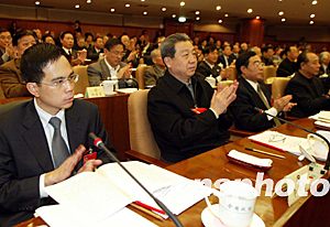 中共中央政治局常委、全國政協十屆一次會議主席團會議主持人賈慶林主持了今天的會議。