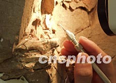 經(jīng)過近半年時間的修復,現(xiàn)存吉林大學博物館的一具在長春境內(nèi)發(fā)現(xiàn)的新種恐龍化石已基本恢復本來面目。經(jīng)國內(nèi)權(quán)威專家鑒定,這極有可能是世界上首次發(fā)現(xiàn)的一個新種恐龍,并初步將它歸類為古角類恐龍。圖為該恐龍化石的頭部。作者:韓丹