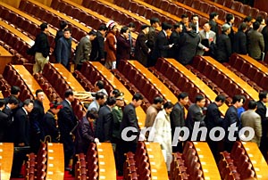 十屆全國人大一次會議十八日在北京閉幕,代表離開會場。作者:鄭萍萍