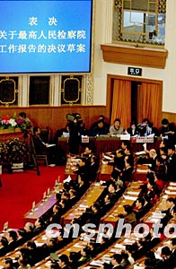 十屆全國人大一次會議十八日在京閉幕,閉幕會上,代表就最高人民檢察院工作報告等決議草案進行表決。作者:鄭萍萍