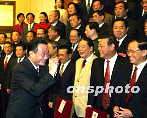 全國人大常委會委員長吳邦國,十九日在北京與出席十屆全國人大常委會一次會議的常委們合影留念。作者:滿會喬
