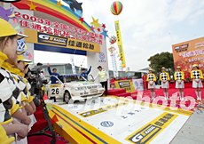 中國(guó)臺(tái)北車(chē)手林志穎作為佳通輪胎形象代言人,參加2003年中國(guó)汽車(chē)?yán)惿虾U颈荣悺T?2日發(fā)車(chē)儀式上,由上海靚女陪伴準(zhǔn)備發(fā)車(chē)。作者:趙振清