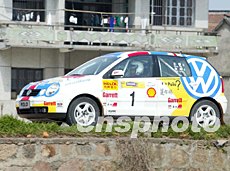 北京慶洋拉力車(chē)隊(duì)車(chē)手陳德安駕駛捷達(dá)GTX賽車(chē),參加2003年中國(guó)汽車(chē)?yán)惿虾U颈荣悺T?2日發(fā)車(chē)儀式前,特意從北京趕來(lái)的妻子與兩歲的兒子前來(lái)助陣,期望取得好成績(jī)。作者:趙振清