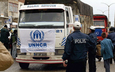 圖:聯(lián)合國難民署救援車隊到達(dá)土伊邊境