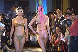 圖:第八屆中國(guó)國(guó)際內(nèi)衣展 模特展示性感時(shí)尚內(nèi)衣(7)