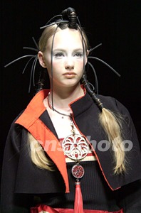 日本著名時裝設計師HIROKO KOSHINO四月三日晚在二00三年東京秋冬時裝展上發表了她的最新作品,希望通過現代手法來表現日本傳統服飾的美感。作者:陶光雄