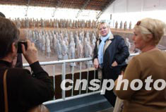 圖:參觀秦始皇陵兵馬俑的外國游客留影